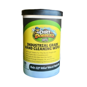 Dirt Dobberz Industrial Hand Wipes are heavy-duty cleaning wipes designed to remove the tough messes a hard day’s work leaves behind — grease, oil, fuel, grime, adhesives, and more. Made for farmers, mechanics, truck drivers, and shop crews, these industrial-grade wipes clean fast without needing water and are tough on dirt while still being easy on your hands.